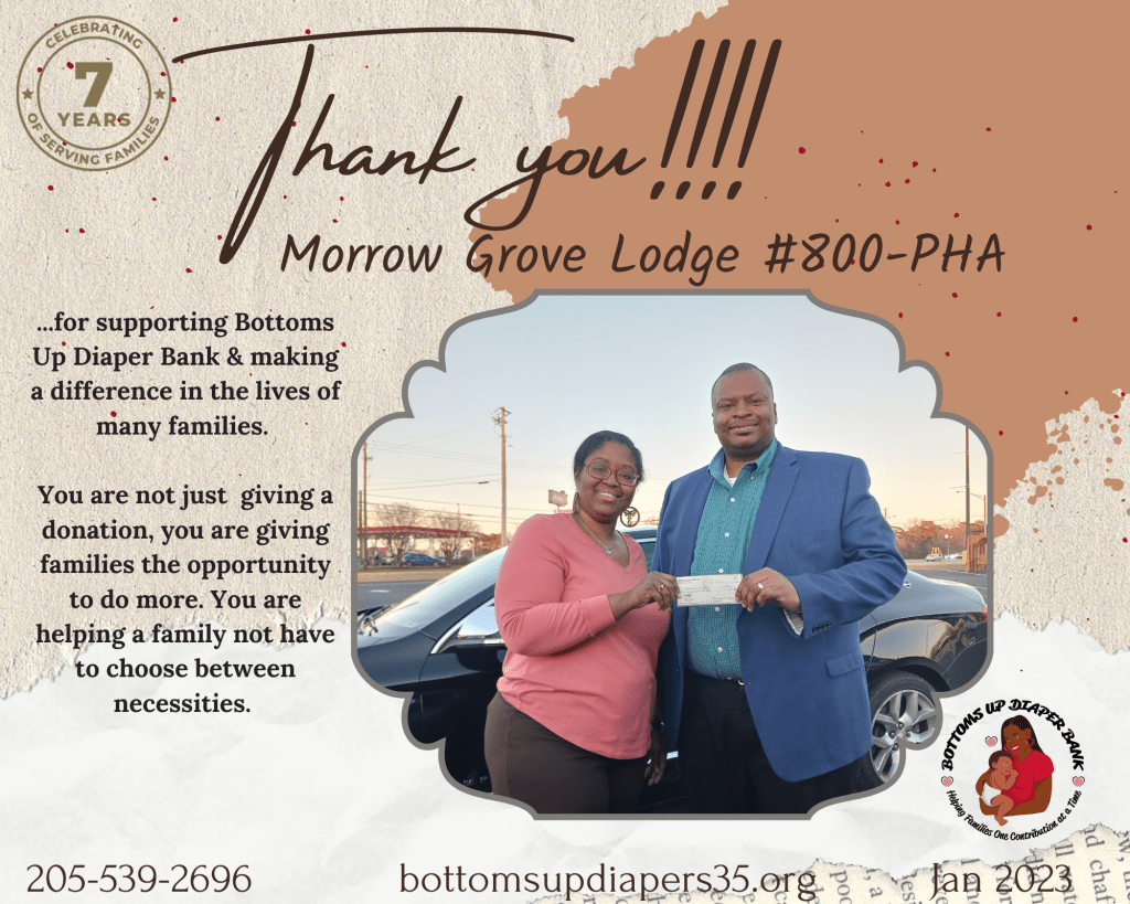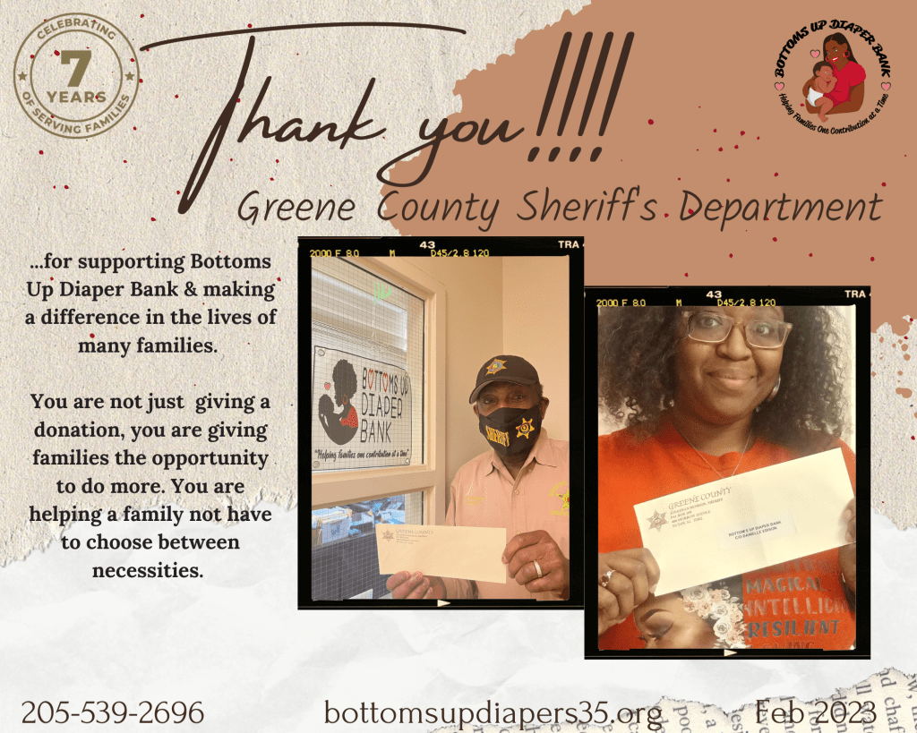 As always, we thank you for your continued support of Bottoms Up Diaper Bank and the things we are doing in West Alabama.