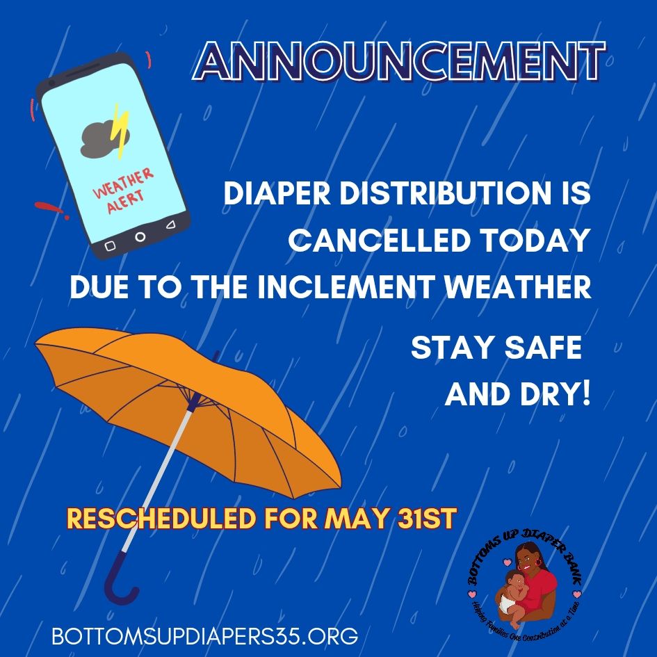 Due to the weather, New Life Baptist Church’s distribution is cancelled today. It has been rescheduled to May 31st.